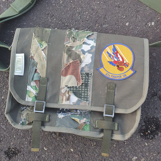 M-0126 Messenger Bag in Olive Drab canvas and camouflage scraps